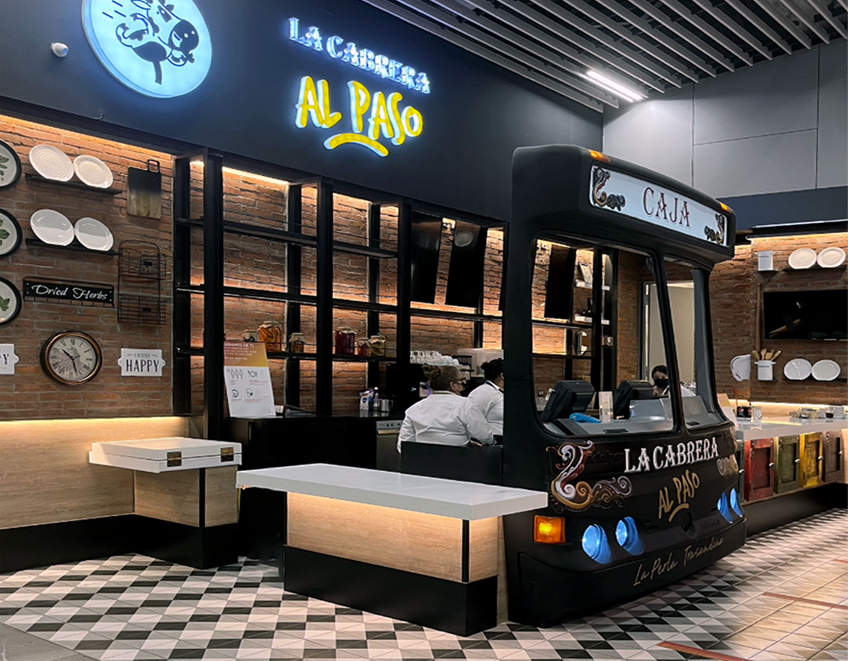 La Cabrera al Paso ofrece un menú reducido pero representativo de la parrilla argentina, con opciones como empanadas, choripanes y cortes de carne a la parrilla. El servicio es rápido y eficiente, diseñado para adaptarse al ritmo de los viajeros. La ejecución del espacio por ST2DIO Chile permitió que la operativa del restaurante se desarrollara de manera óptima, integrando diseño, funcionalidad y flujo de clientes en un entorno de alta demanda.